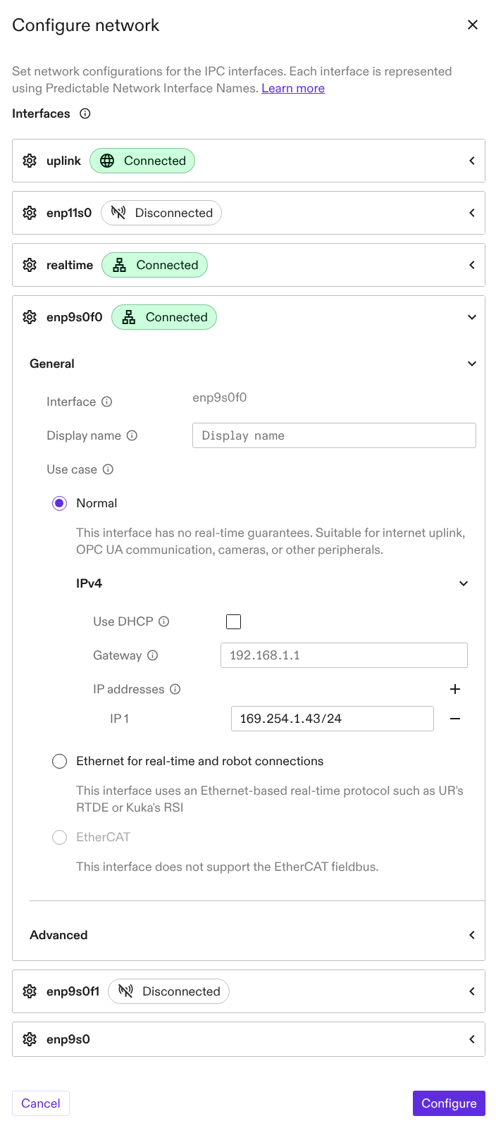 2. Next, go to the Connection section and click the Connect camera or Reconnect camera button to open the dialog listing all physically connected cameras. Select the hardware identifier corresponding to the camera and then click Connect.